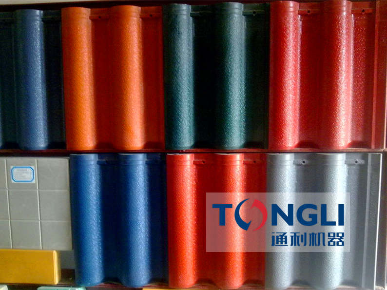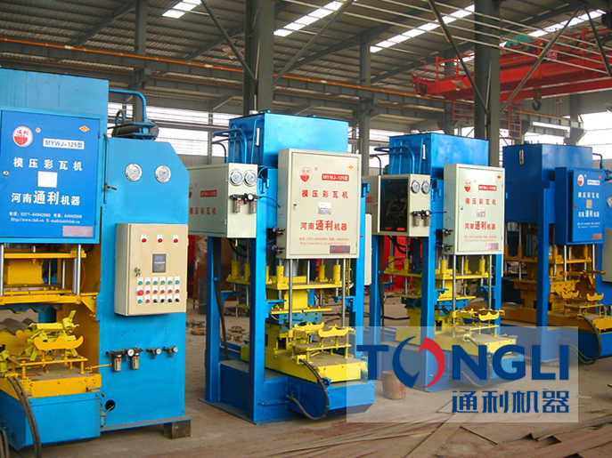 自1985年通利生產出臺制瓦設備以來,相繼推出余種制瓦機設備,滿足客戶的不同需求。2005年成功的MYWJ-125型水泥彩瓦機生產線。通利彩瓦機設備集機、電、液氣于一體,在生產過程中給料、成型、脫模、推出部實行自動化,由于生產彩瓦工藝是噸位模 壓成型,因此,制品成型美觀,強度,抗滲性能,且防凍性能是其它瓦型無法比試的,已廣泛應用于城市農村居民住宅,并被確定為先使用的新型建筑屋面材料。